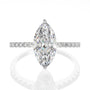 The Leila Ring is a study in elegance and light. A flawless marquise-cut moissanite sits at the centre, its elongated form designed to lengthen and refine the hand. Each facet reflects a spectrum of brilliance, framed by a slim pavé band that sparkles with quiet sophistication.