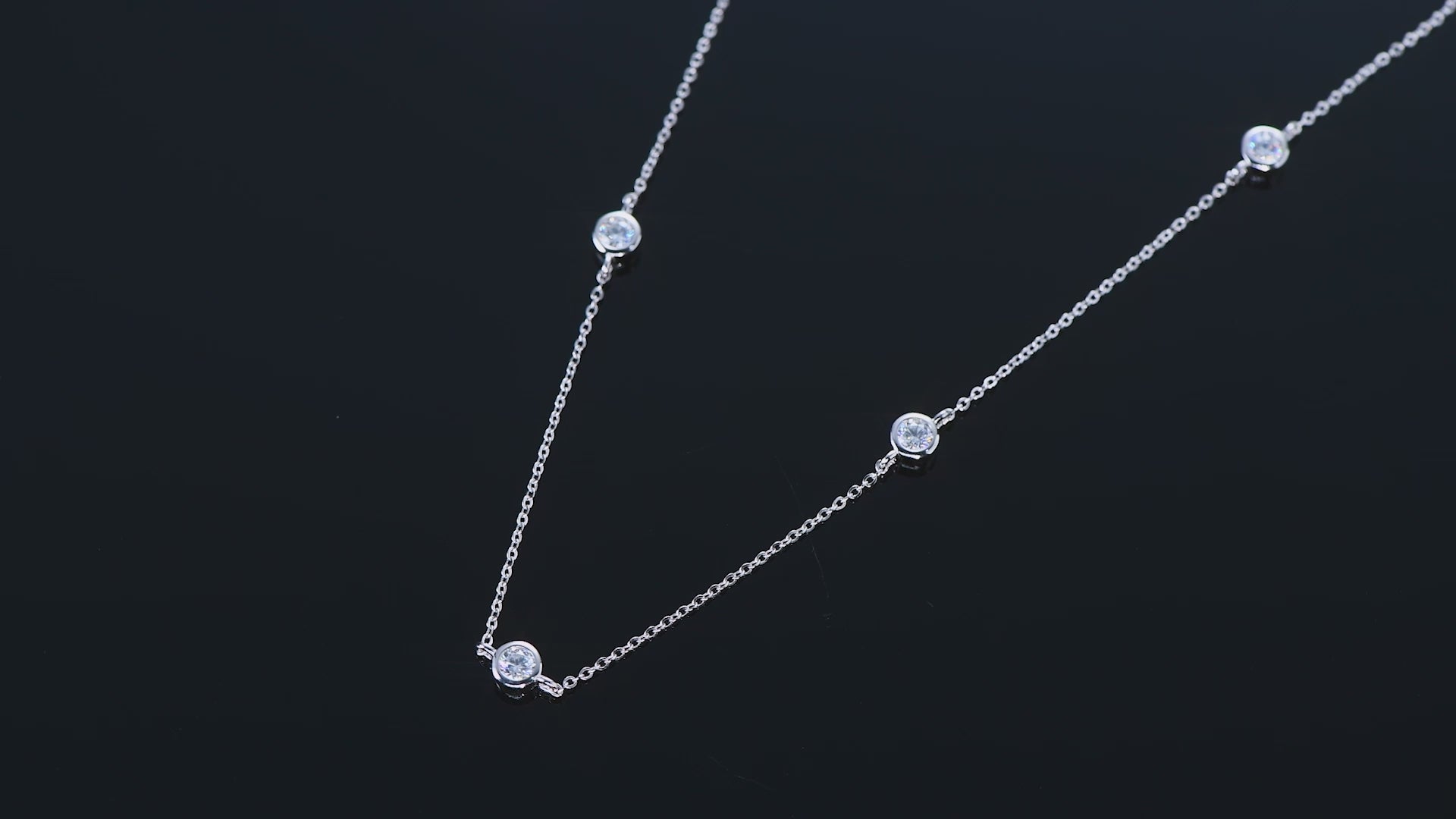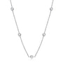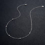 The Angelina Necklace is a study in quiet brilliance. Delicate, refined, and endlessly wearable, it features evenly spaced D colour moissanite stones set along a fine sterling silver chain. Each stone catches the light with a soft, confident sparkle that feels elegant rather than showy.
