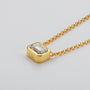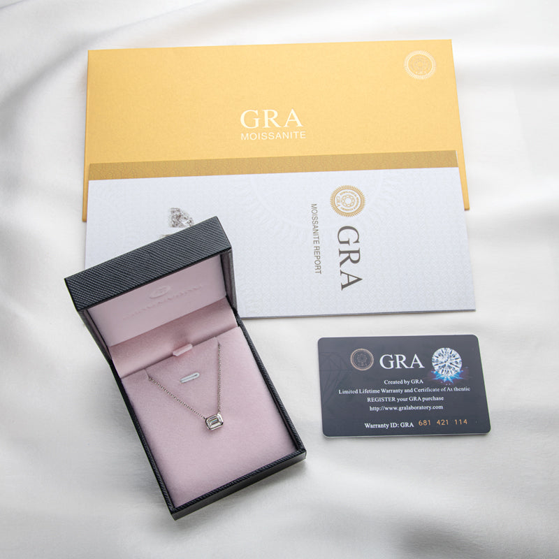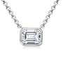 The Hélèna Emerald Bezel Pendant combines architectural precision with timeless radiance. A one-carat emerald-cut moissanite rests within a smooth, sculpted bezel that highlights its clean lines and mirror-like facets. The result is a piece that glows with quiet sophistication and modern strength.