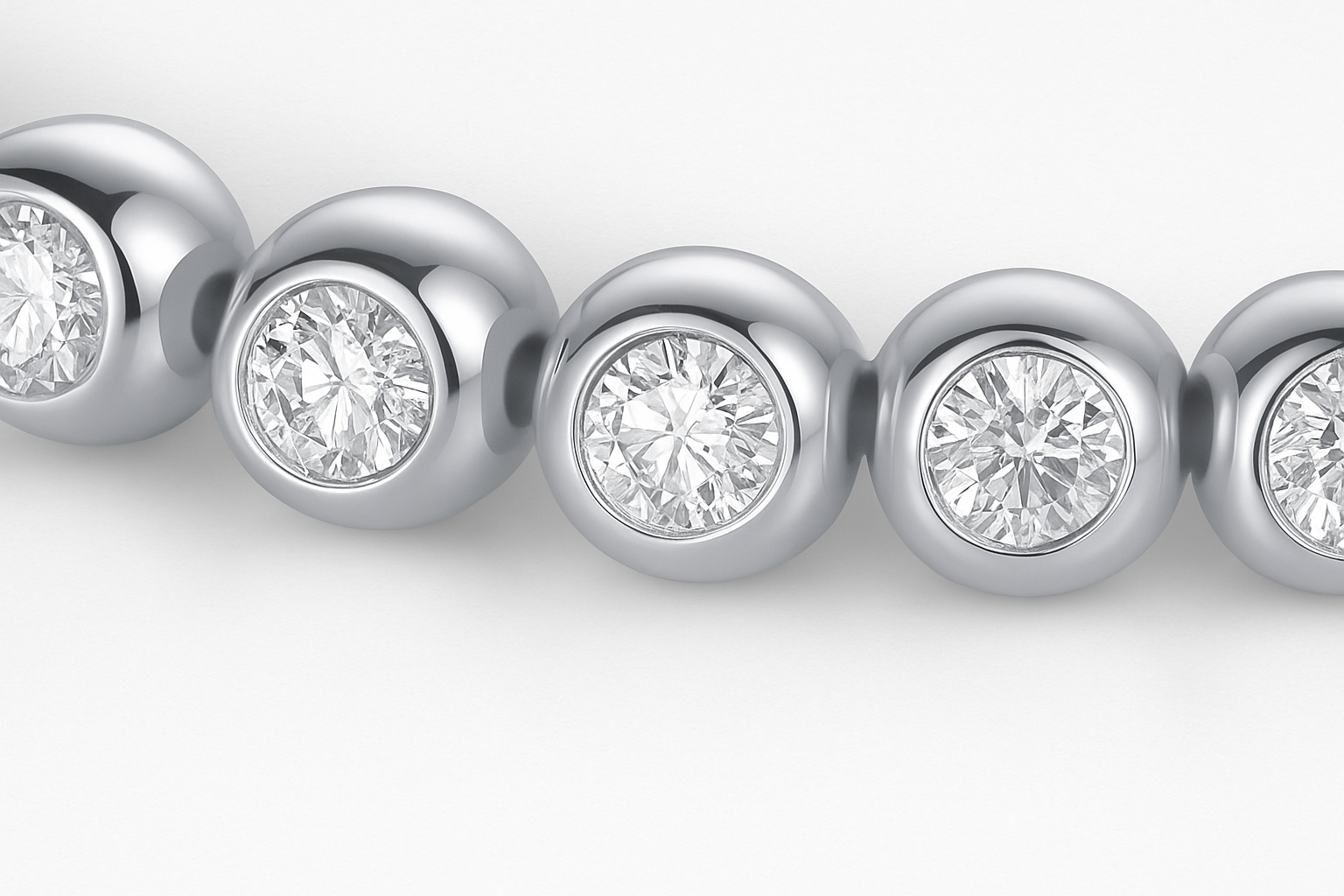 The Léonie Bracelet is the essence of quiet luxury. A continuous line of brilliant moissanite stones glows within smooth bezel settings, creating a seamless ribbon of light that moves gracefully with you. Each stone is precision cut and hand-set to capture brilliance from every angle, radiating elegance in motion.