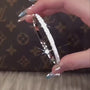 Crafted from S925 sterling silver and finished in a soft platinum polish, this bangle glows with quiet sophistication. The 2 mm moissanite stones are arranged in perfect symmetry, forming a continuous stream of brilliance that reflects timeless refinement.