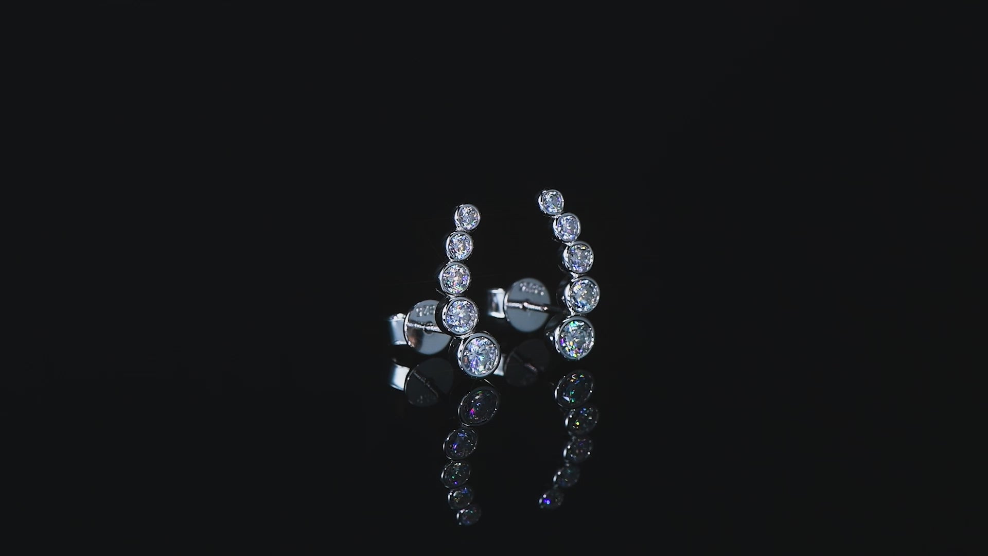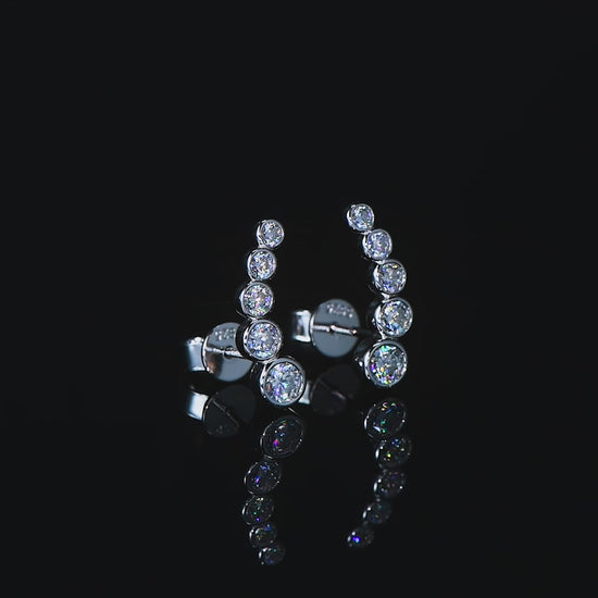 The Zélie Earrings embody refined elegance. Five round brilliant moissanite stones, each meticulously bezel set, cascade in a graceful curve that follows the natural line of the ear. Their graduated design captures the perfect balance of symmetry and sparkle, reflecting light with every movement. Crafted from solid 925 sterling silver, Zélie glows with quiet sophistication, whether worn day or night.